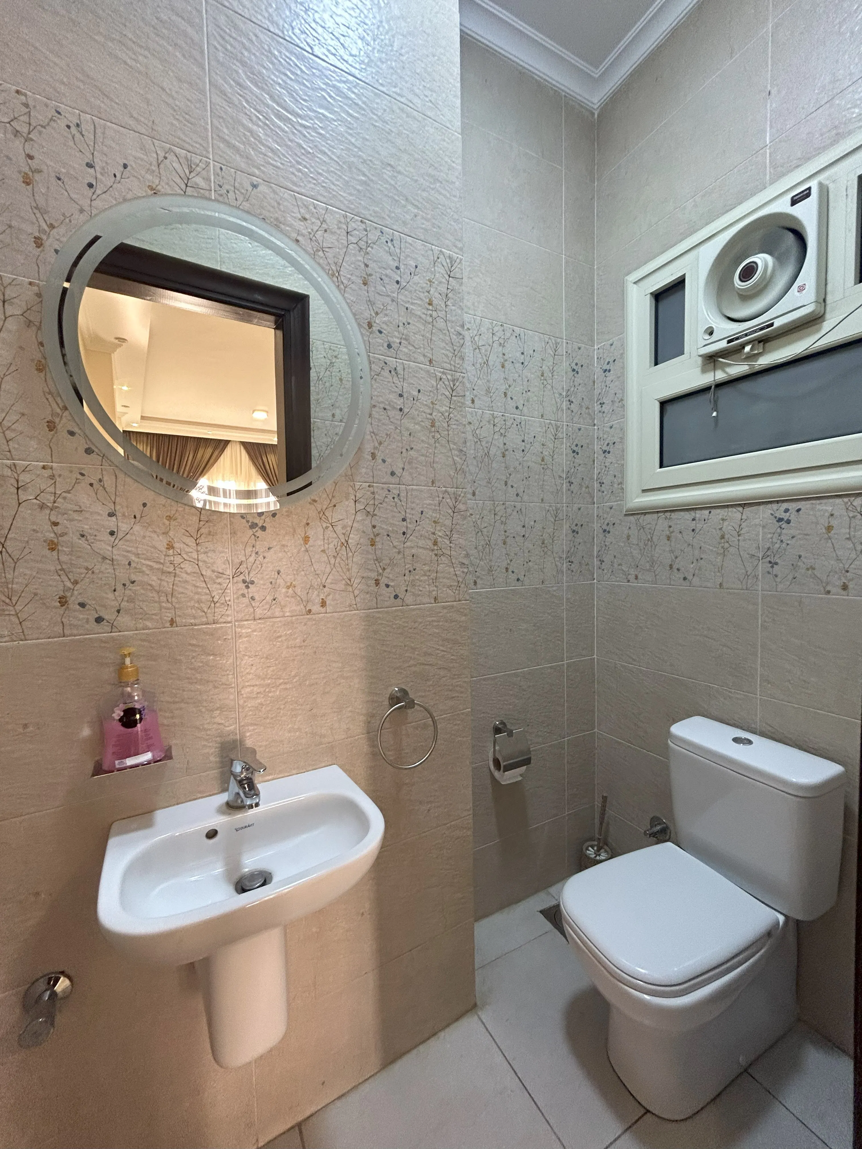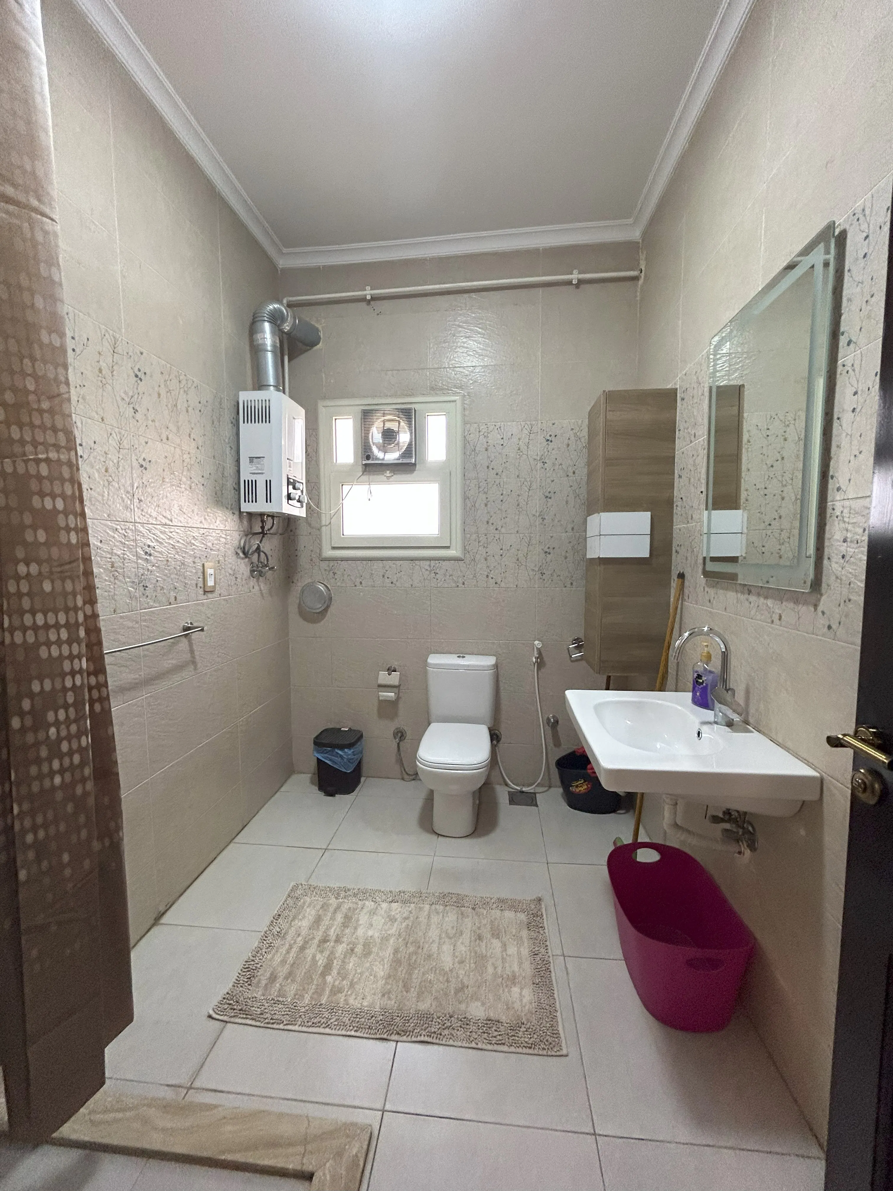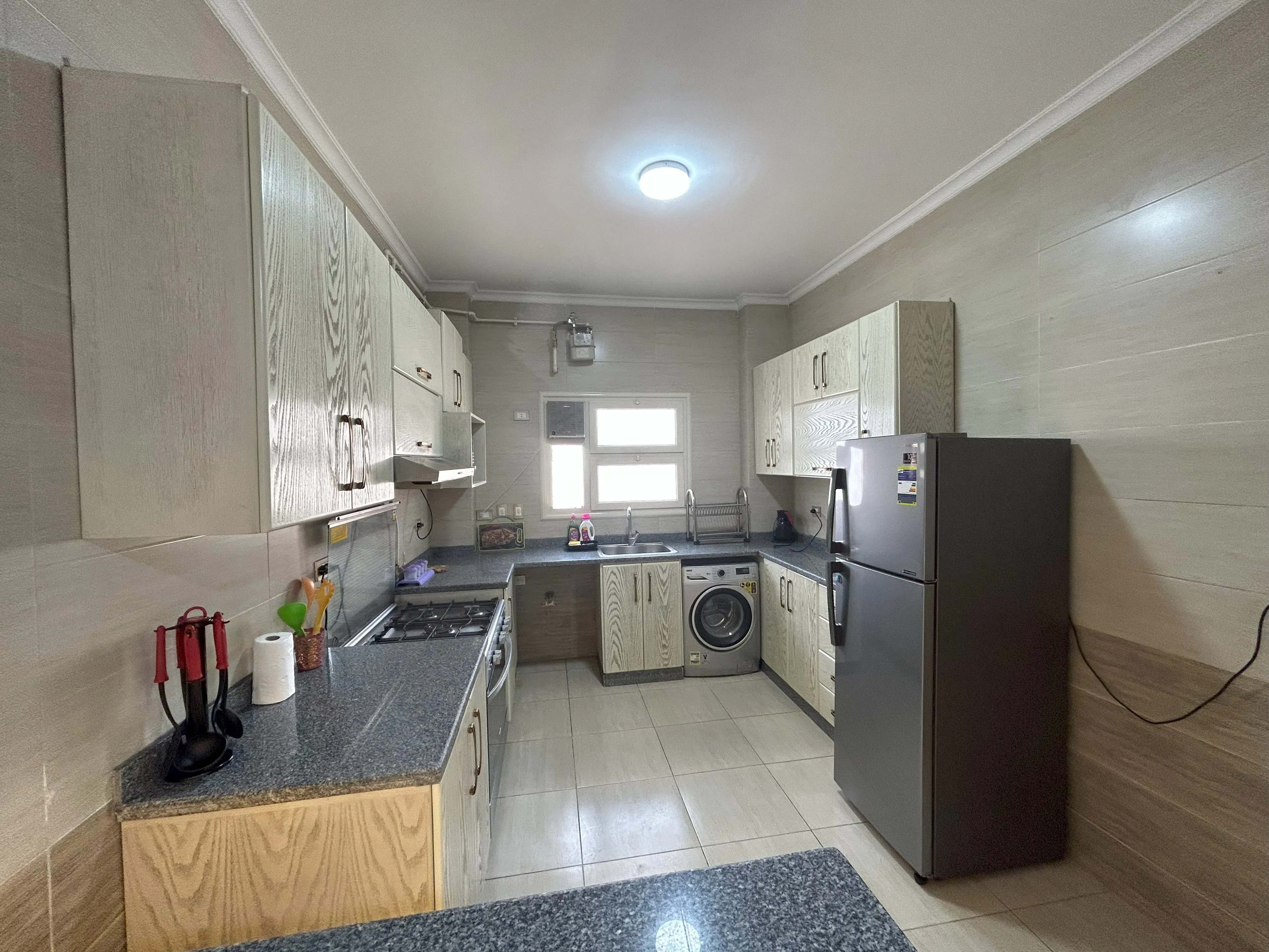 This retreat offers everything needed for a comfortable stay, thoughtfully arranged to accommodate both families and business travelers. Guests can unwind on the outdoor balcony or indoors in a spacious U-shaped living area that’s perfect for evening gatherings. The chef-grade kitchen is ideal for preparing gourmet meals. With five advanced air conditioning units and high-speed internet throughout, it’s perfectly suited for remote work. The apartment contains two bathrooms: one full bathroom and an additional half bathroom. On-site laundry and ironing facilities are also available for added convenience.
